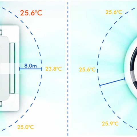 Freematch heißt das Multisplitsystem für die private und teilgewerbliche Anwendung. Bis zu 5 Inneneinheiten können mit nur einer Außeneinheit betrieben werden.