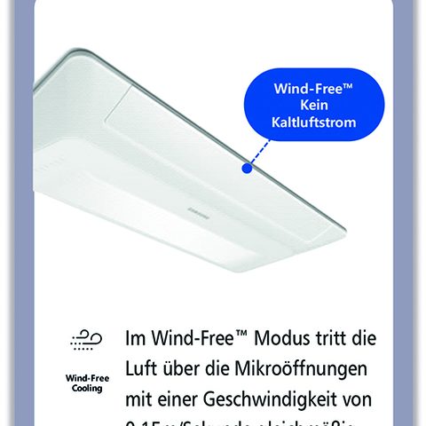 Der Technologieriese Samsung bietet auf dem Klimagerätemarkt eine Vielzahl moderner Lösungen an: Von XY bis XY lässt sich eine Vielzahl von Geräten installieren. Durch Samsungs "360° Wind-Free"-Technologie verteilen kleine Luftauslässe die Luft deutlich weiter in großen Räumen, ohne einen Kaltluftstrom zu erzeugen. Somit sind Sie, Ihre Angestellten und Ihre Kunden sicher vor einer Erkältung!